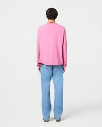 - Men's sizing, Women should size down for a less oversized fit. - Light-weight Crew neck - Dropped shoulder - Shirttail curved hem - Jersey roll hem, neck, and cuff - Signature GIR branding at center back neck - 100% Cashmere - Yana is 5' 10" / 178 CM and is wearing a medium. - BRADLEY IS 6' 2.5" / 189 CM and is wearing a Medium. - Premium cashmere sourced from inner Mongolia, manufactured in China