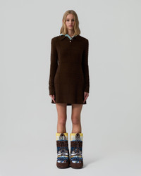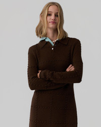 The Popcorn Polo Dress builds on our signature Popcorn Top with the same playful texture in a new, mini dress silhouette. Knit from a mid-weight wool–cashmere blend in a grid popcorn stitch, this women’s polo sweater dress brings subtle fun to any occasion. DETAILS - MID-WEIGHT POPCORN STITCH POLO DRESS - POPCORN IN GRID PATTERN - POLO COLLAR WITH three BUTTON CLOSURE - JERSEY ROLL HEM AND SLEEVE CUFF - MINI DRESS LENGTH - signature GIR BRANDING DETAIL AT BACK NECK - 70% WOOL, 30% CASHMERE - CHIMENE IS 5' 9'' / 175.26 CM AND IS WEARING A SIZE small.
