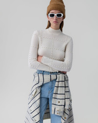 The Popcorn Top brings texture to your everyday look. Crafted from a soft cashmere blend, this women’s cropped mock neck sweater features our popcorn design for a subtly playful look. Lightweight yet cozy, it layers perfectly with denim or skirts for year-round wear. DETAILS - Women's sizing, intended for a cropped, slim fit - Medium-weight knit - MOCK NECK WITH JERSEY ROLL EDGE - JERSEY ROLL HEM AND SLEEVE TRIM - Signature GIR branding at center back - 70% MERCERIZED WOOL, 30% CASHMERE - JAMILLA IS 5’ 11” / 180 CM AND IS WEARING A SIZE SMALL.