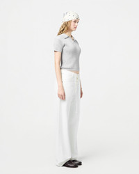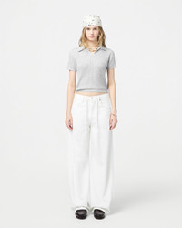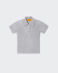 - Women's sizing, intended to fit true to size - Extra light-weight waffle knit - Polo shirt collar with three-button front placket - Textured waffle stitch - Signature GIR branding at center back neck - 100% Cashmere - FLOOR IS 5' 10" / 178 CM and is wearing a Small. - Premium cashmere sourced from inner Mongolia, manufactured in China