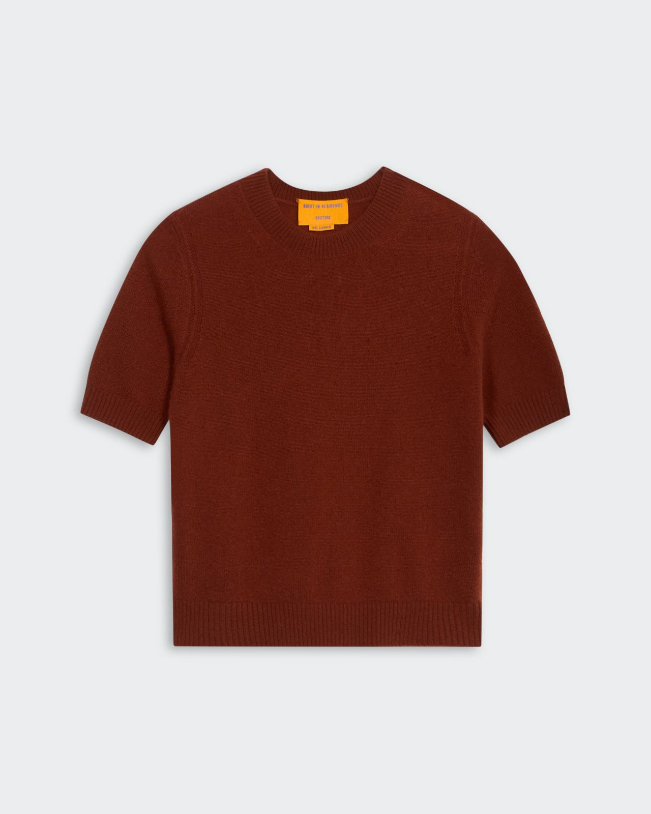 - Women's sizing, intended for a cropped, relaxed fit - LIGHT-WEIGHT JERSEY CREWNECK SWEATER TEE - RIB HEM, NECK, AND CUFF TRIM - ARMHOLE TUCK STITCH DETAIL - Signature GIR branding at center back - 100% CASHMERE - JULIA IS 5' 11" / 180 CM and is wearing a Small. - Premium cashmere sourced from inner Mongolia, manufactured in China