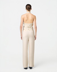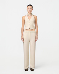 - MID-WEIGHT FITTED HALTER VEST - FRONT BUTTON CLOSURE - CONTOURING DARTS - JERSEY ROLLED EDGE AT NECKLINE AND ARMHOLE - TWO SINGLE WELT FAUX POCKET DETAILS at the FRONT - ADJUSTABLE STRAP AT CENTER BACK With BUCKLE - Signature GIR branding at center back - 100% CASHMERE - ELLA IS 5' 11" / 180 CM and is wearing a Small. - Premium cashmere sourced from inner Mongolia, manufactured in China