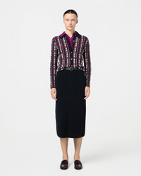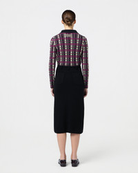 - MID-WEIGHT TAILORED SKIRT - STRAIGHT FIT, MID-CALF LENGTH - FLY FRONT ZIP CLOSURE - WAISTBAND WITH BELT LOOPS - SIDE FRONT POCKETS - Two BACK five POINT PATCH POCKETS - 100% CASHMERE - ELLA IS 5' 11" / 180 CM and is wearing a Small. - Premium cashmere sourced from inner Mongolia, manufactured in China
