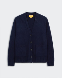 - Unisex fit to Men's sizing. Women should size down for a less oversized fit. - Medium-weight knit - Five-button closure - Racked rib stitch placket/neckline - Ribbed cuff and hem - Two front patch pockets with ribbed trim - Integral knitted branding - 100% Cashmere - Shuting is 5'10" / 178 and is wearing a Medium. - Premium cashmere sourced from inner Mongolia, manufactured in China