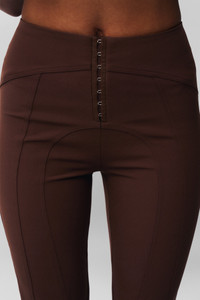 - Borrowing details from our corsets, the Aurora Trousers are probably the hottest pants we’ve ever made. Seaming lends shape to the flare-leg silhouette, but the piece de resistance is the hook-and-eye detailing: along the fly and at each ankle, a series of closures allow for a bit of peekaboo. These are the go-to pants that we can't get enough of. - Hook-and-eye closures - Hook-and-eye detailing at ankles - Composition: 92% Polyester, 8% Spandex - Birta is wearing a size S and is 5'10" with a 32" bust, 33" hips, and 25.5" waist