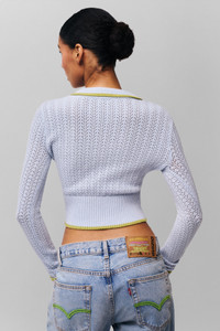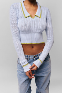 - Upgrade your wardrobe with the Charlotte Pullover. Our pointelle knit fabric adds a touch of luxury, while the collar detail with piping lining makes it stand out. - Composition: 50% Viscose 28% Polyester 22% - Birta is wearing a size S and is 5'9" with a 33" bust, 38" hips, and 23" waist