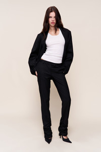 - Tailored straight-leg trousers with ruched hems, finished with belt loops, side pockets, and back welt pockets. Designed to pair with our Perfect Oversized Blazer or a simple tee. - Noa is wearing a size S and is 5'10" with a 29" bust, 35" hips, and 23.5" waist
