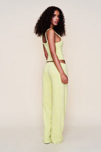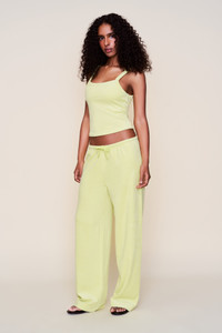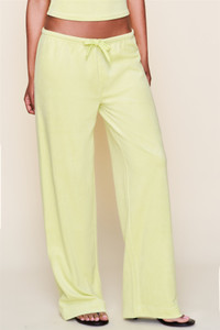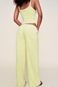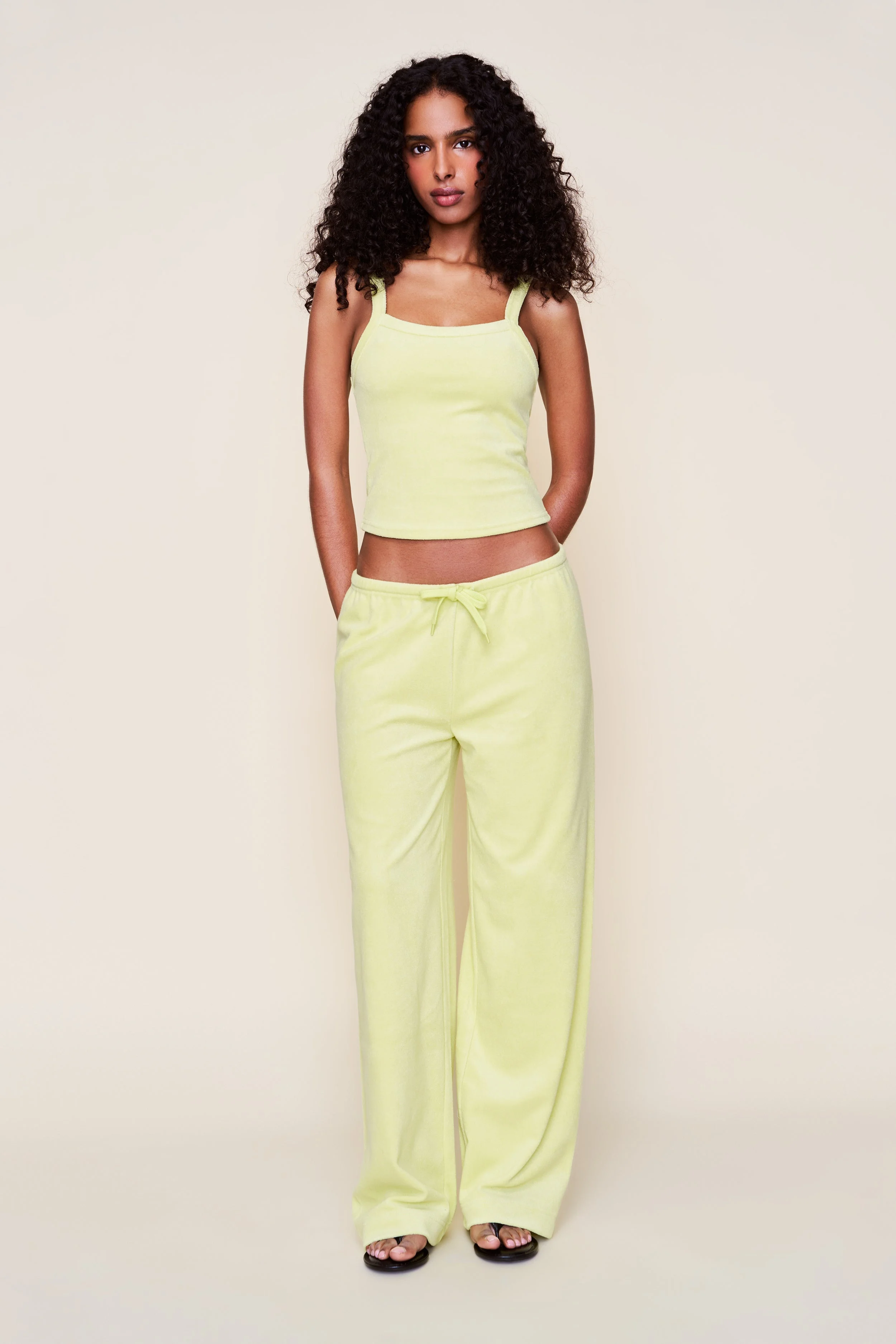 - An off-duty essential in plush terry. The Dani Terry Pant features a low-rise fit with a relaxed, straight leg and adjustable drawstring waistband. Soft, slouchy, and endlessly wearable—pair it with the matching Dani Tank or mix it into your everyday lounge rotation. - Composition: 85% Cotton, 15% Polyester - Eileen is wearing a size S and is 5'9" with a 32" bust, 35" hips, and 25.5" waist