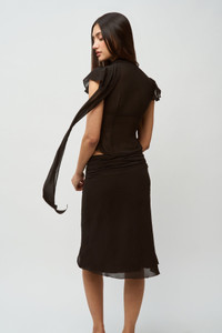 - The Eda Skirt, made of elegant chiffon, offers a ruched waistline with a side zipper for functionality. Designed in a flattering midi length, this skirt is double-lined and effortlessly flowy. We recommend pairing with the Ara Top! - Composition: 100% Polyester - Ainhoa is wearing a size S and is 5'9½" with a 34" bust, 34½" hips, and 24" waist