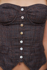 - The Edith Corset boasts a structured corset boning and a supportive soft-padded cup, with a lace-up back adding a touch of charm. The pearlized finish buttons are the perfect finishing touch. - Faux welt pocket details - Removable straps - Composition: 98% Polyester, 2% Spandex - Shannon is wearing a size S and is 5'9" with a 32" bust, 34.5" hips, and 24" waist