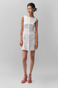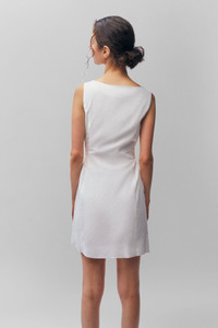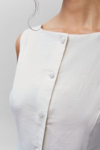 - Welcome the Elada Dress, the perfect linen staple for your wardrobe. This dress features a straight neckline and charming button details throughout. - Composition: 55% Linen, 45% Rayon - Ainhoa is wearing a size S and is 5'9½" with a 34" bust, 34½" hips, and 24" waist