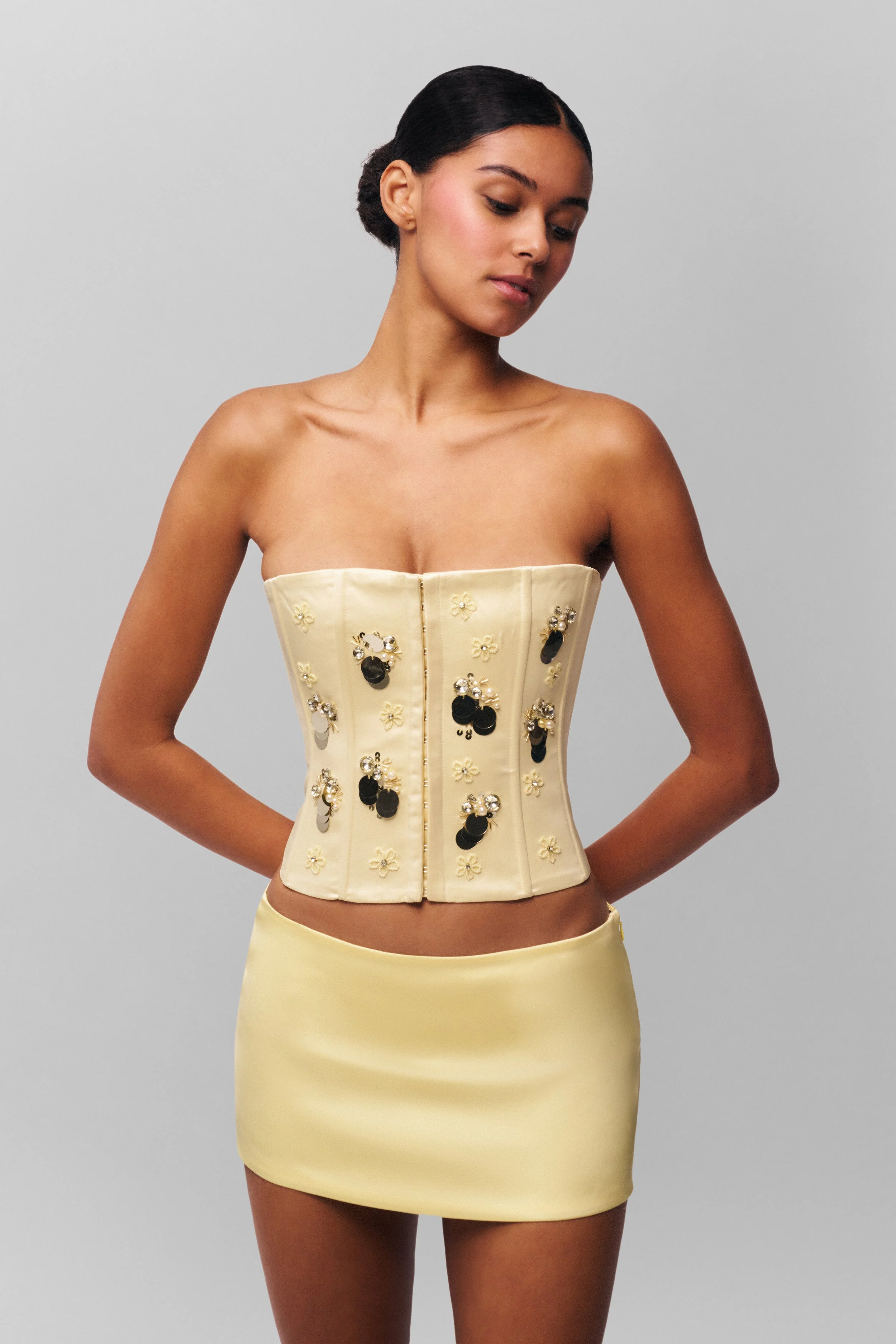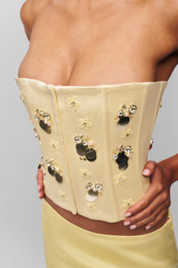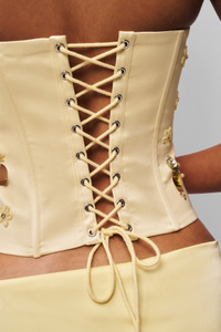 - Our adored Satin Corset with a touch of extra embellishments. - Composition: 97% Polyester, 3% Spandex - Birta is wearing a size S and is 5'9" with a 33" bust, 38" hips, and 23" waist