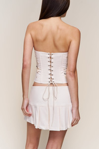 - Our adored Satin Corset with a touch of extra embellishments and in a. new fabrication. - Composition: 53% Polyester, 19% Rayon, 12% Cotton, 12% Lyocell, 4% Spandex - Alessandra is wearing a size S and is 5'9" with a 32.5" bust, 36.5" hips, and 25" waist