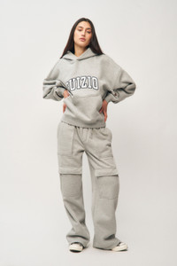 - Our Fleece Cargo Sweatpant brings the cozy of your go-to sweatpants and the cool of your fave cargos into one perfect pair. With extra-large cargo pockets and a wide-legged fit, these pants have plenty of space for all your essentials. - Composition: 65% Polyester, 35% Cotton - Sonali is wearing a size S and is 5'10" with a 31" bust, 35" hips, and 23" waist
