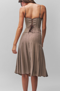 - The Gibson Pleated Skirt is the perfect iteration of everything we love about schoolgirl style. Cut to sit low on the hips with allover knife pleats, it has a mid-calf length – perfect for wearing with socks, sneakers, and a baby tee to get the full look. - Concealed side zip with button closure - Composition: 96% Polyester, 4% Spandex - Ainhoa is wearing a size S and is 5'9½" with a 34" bust, 34½" hips, and 24" waist