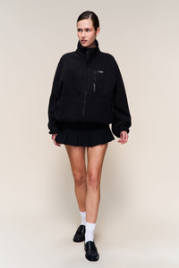 - A minimalist layer with maximum comfort. The Guizio Fleece Zip Up Jacket features a soft brushed texture, zip pockets, and a relaxed, oversized silhouette. Finished with subtle logo detailing—easy, elevated, and endlessly wearable. - Composition: 100% Polyester - Alessandra is wearing a size M and is 5'9" with a 32.5" bust, 36.5" hips, and 25" waist