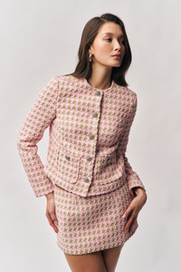 Yada is wearing a size XS and is 5'9" with a 32" bust, 34" hips, and 24" waist - Elevate your wardrobe with the Halstead Skirt, a stunning piece crafted from classic tweed and adorned with silver embellishments. This skirt combines timeless sophistication with a modern touch, making it perfect for both casual and dressier occasions. Pairs well with the Wren Jacket & Arlo Corset - Composition: 100% Polyester - Yada is wearing a size XS and is 5'9" with a 32" bust, 34" hips, and 24" waist
