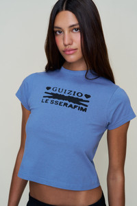 - The Hearts Tee reimagines a Guizio classic through the Guizio x Le Sserafim collaboration. Cut in a fitted baby tee silhouette, it’s crafted from soft cotton and defined by the bold logo lock-up across the chest, framed with playful heart motifs for a statement finish. - Composition: 100% Cotton - Kayla is wearing a size S and is 5'8" with a 32" bust, 35" hips, and 24.5" waist