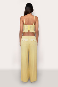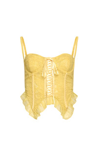 - Our lace Flutter Corset features everything we love about lingerie: beautiful lace construction, satin ribbons, and adjustable hook-and-eye closures. Finished with a chiffon flounce hem, it’s a closet staple. - Adjustable shoulder straps and back hook-and-eye closures - Composition: 95% Cotton, 5% Polyester - Dani is wearing a size S and is 5'10" with a 32" bust, 35" hips, and 25" waist
