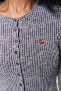 - Soft, lightweight, and effortlessly feminine — the Lana Top is your new everyday knit. Designed in a plush rib texture, it features a slightly cropped silhouette, delicate button detailing, and our signature embroidered Guizio bear at the chest. Easy to wear on its own or layered, it strikes the perfect balance between cozy and elevated. - Composition: 95% Cotton, 5% Spandex - Eileen is wearing a size S and is 5'9" with a 32" bust, 35" hips, and 25.5" waist