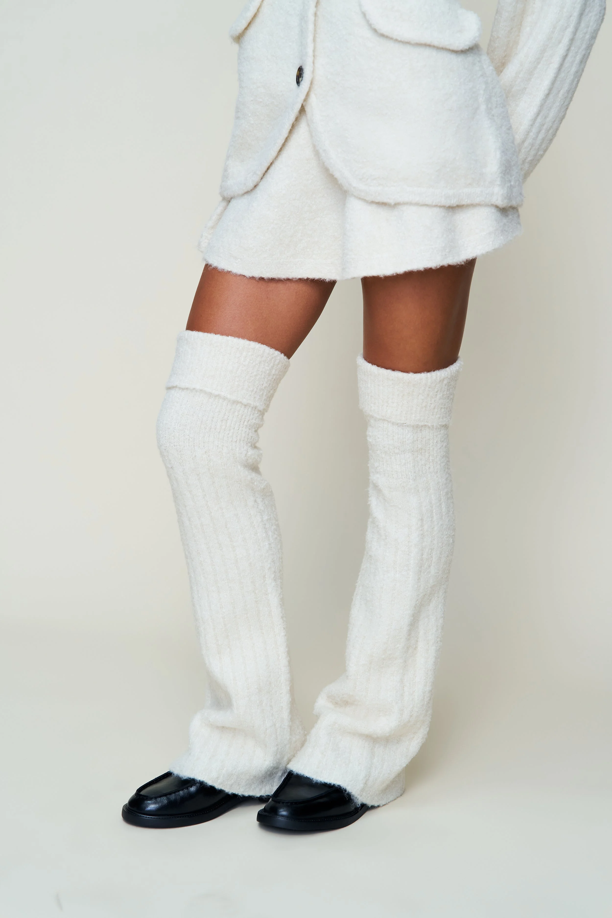 - Stay warm and stylish with our oversized Leg Warmer, made from soft boucle fabric. Designed for comfort, these leg warmers are perfect for layering over leggings or wearing at home. Elevate your cold-weather look with this trendy accessory. - Composition: - 41% Rayon, 34% Nylon, 23% Polyester