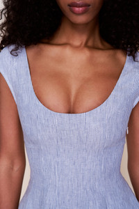 - Meet the Leila Dress: it features a scooped neckline, midi length, and a lace-up back closure with functional pockets and a side zip closure. Made from a linen blend, it's a must-have for the summer season. - Composition: 55% Linen, 45% Rayon - Eileen is wearing a size S and is 5'9" with a 32" bust, 35" hips, and 25.5" waist