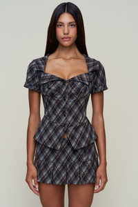 LIA BUTTONDOWN DIAMOND TARTAN CORSET