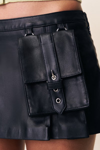- A sleek low-rise leather mini with sharp pleats and a removable cargo pocket. Smooth, structured, and designed to instantly elevate any look. - Composition: 100% Leather - Brittany is wearing a size S and is 5'10" with a 32" bust, 34.5" hips, and 22.5" waist