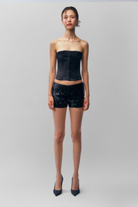 - Our classic Low Rise Paillette Skirt just got a makeover - introducing the Paillette Short! Sparkling sequins and paillettes adorn the entire fitted silhouette, ensuring you'll shine from every angle. It's a must-have for the Guizio girl. - Allover embellishing - Concealed side zip - Composition: 90% Polyester, 10% Spandex - Ainhoa is wearing a size S and is 5'9½" with a 34" bust, 34½" hips, and 24" waist