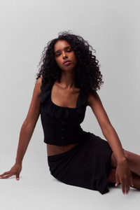 - The one you desperately need – meet our Paloma Skirt. A Signature favorite that has a delicate scalloped waist and a sweet satin bow. A flossy flounce hem lends a playful finish; pair it with the coordinating Paloma top for a cute total look. - Elasticized waistband - Pull-on style - Scallop trim - Flounce hem - 100% Polyester Crepe - Eileen is wearing a size S and is 5'9" with a 32" bust, 35" hips, and 25.5" waist
