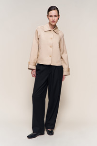 - A cropped take on the classic trench. Designed with a structured collar, button cuffs, and a vented back flap for ease of movement. Finished with tonal buttons and subtle interior plaid lining for a touch of contrast. Tailored yet easy—ideal for layering over everyday looks. - Composition: 100% Cotton - Alessandra is wearing a size XS and is 5'9" with a 32.5" bust, 36.5" hips, and 25" waist