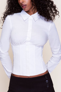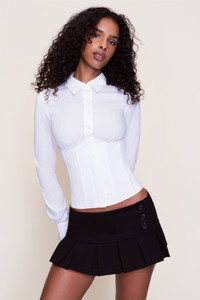 - Ideal for any night out, this timeless top features a corset-inspired design with a lace-up back and boning for a flattering, cinched look. - Composition: 98% Cotton 2% Spandex - Birta is wearing a size S and is 5'9" with a 33" bust, 38" hips, and 23" waist