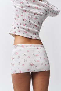 - Introducing the Thermal Skort, designed for both comfort and style. Featuring a beautiful printed floral design on our cozy thermal fabric, this skort add a touch of femininity to your loungewear or casual outfits. - Composition: 100% Cotton - Yada is wearing a size XS and is 5'9" with a 32" bust, 34" hips, and 24" waist