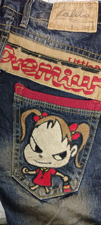 🔥DOPE🔥YOSHITOMO NARA LOLITA Exotic Vintage Denim Low Rise Cropped Style Jeans ➤ BRAND NAME : YOSHITOMO NARA LOLITA MADE in KOREA for Japan's Market CONDITION : (USED : 7/10) MATERIAL : Cotton Denim ......…................................................................ ➤ SIZE MANUAL MEASUREMENT / LAID FLAT (INCHES) WAIST : 14"( W28") (SIZE ON TAG : XS) LENGTH ; *Outseam : 35" *Inseam : 27" (PLEASE CHECK ACTUAL SIZE & PICTURES CAREFULLY, ALL SALES ARE FINAL, NO RETURN OR REFUND) .......….............................................................. ➤✈️WORLDWIDE EXPRESS SHIPPING ✈️ The Items Will Be Shipped From Asia Via DHL / FedEx (ETA) 5~8 Days Worldwide ❗️(PLEASE SEND ME YOUR CONTACT NUMBER AFTER MAKING A PURCHASE FOR SHIPPING PURPOSE :TO BE WRITTEN ON THE PARCEL) (Thank You) ~ GukitaFasshonStore ~