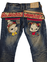 🔥DOPE🔥YOSHITOMO NARA LOLITA Exotic Vintage Denim Low Rise Cropped Style Jeans ➤ BRAND NAME : YOSHITOMO NARA LOLITA MADE in KOREA for Japan's Market CONDITION : (USED : 7/10) MATERIAL : Cotton Denim ......…................................................................ ➤ SIZE MANUAL MEASUREMENT / LAID FLAT (INCHES) WAIST : 14"( W28") (SIZE ON TAG : XS) LENGTH ; *Outseam : 35" *Inseam : 27" (PLEASE CHECK ACTUAL SIZE & PICTURES CAREFULLY, ALL SALES ARE FINAL, NO RETURN OR REFUND) .......….............................................................. ➤✈️WORLDWIDE EXPRESS SHIPPING ✈️ The Items Will Be Shipped From Asia Via DHL / FedEx (ETA) 5~8 Days Worldwide ❗️(PLEASE SEND ME YOUR CONTACT NUMBER AFTER MAKING A PURCHASE FOR SHIPPING PURPOSE :TO BE WRITTEN ON THE PARCEL) (Thank You) ~ GukitaFasshonStore ~