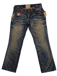🔥DOPE🔥YOSHITOMO NARA LOLITA Exotic Vintage Denim Low Rise Cropped Style Jeans ➤ BRAND NAME : YOSHITOMO NARA LOLITA MADE in KOREA for Japan's Market CONDITION : (USED : 7/10) MATERIAL : Cotton Denim ......…................................................................ ➤ SIZE MANUAL MEASUREMENT / LAID FLAT (INCHES) WAIST : 14"( W28") (SIZE ON TAG : XS) LENGTH ; *Outseam : 35" *Inseam : 27" (PLEASE CHECK ACTUAL SIZE & PICTURES CAREFULLY, ALL SALES ARE FINAL, NO RETURN OR REFUND) .......….............................................................. ➤✈️WORLDWIDE EXPRESS SHIPPING ✈️ The Items Will Be Shipped From Asia Via DHL / FedEx (ETA) 5~8 Days Worldwide ❗️(PLEASE SEND ME YOUR CONTACT NUMBER AFTER MAKING A PURCHASE FOR SHIPPING PURPOSE :TO BE WRITTEN ON THE PARCEL) (Thank You) ~ GukitaFasshonStore ~