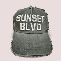 Yoshinori Kotake Design “SUNSET BLVD” Distressed Denim Trucker Cap – Japan Exclusive *Description:* Authentic Yoshinori Kotake Design trucker cap featuring bold *“SUNSET BLVD”* embroidery on the front panel. Crafted from washed grey denim with signature *distressed edges* and *mesh back* for breathability. - Iconic Americana-inspired aesthetic - Structured front with thick 3D embroidery - Adjustable snapback closure - Frayed brim and vintage-washed details - Fit to 57cm - 62cm - Made in Japan A rare piece from the cult-favorite Japanese designer. Great for collectors or fans of street-lux fashion. Condition: Pre-owned, excellent vintage look as intended by design. Ships worldwide. Reasonable offers welcomed. ✈️WORLDWIDE EXPRESS SHIPPING✈️ (DHL / FedEx (ETA) 7~10 Days Worldwide (From Asia) ~GukitaFasshonStore~