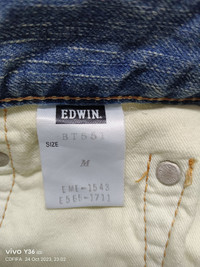> BRAND NAME Tag : Edwin 503 Blue Trip Condition : Used ( 7.5 / 10 ) Material : Cotton Colour : Blue Denim ........................................................................ > Size On Tag : M Manual Measurements / Laid Flat ( inches ) Waist : ~ 15 " Length : ~ 38.5 " ( Outseem ), ~ 30 " ( Inseem ) ( Please Check Actual Size And Image Carefully. All Sales Are Final. No Return, No Refund ) * The Colour Of The Item May Slightly Vary, Due To Quality Of Camera And Light Effect. ........................................................................ > ✈️ WORLDWIDE EXPRESS SHIPPING ✈️ DHL / FedEx 5-10 Days Worldwide (From Asia) ❗ ( Please Sent Me Your Contact Number After Making A Purchase For Shipping Purpose - To Written On Parcel ) Thank You ~ GukitaStore ( ぐきた店 ) ~