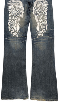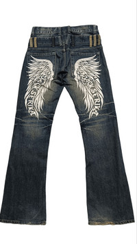 💥Vtg JACK SERIKA Double Waist Punk Angel Wings Flare Denim ➤ BRAND NAME : JACK SERIKA CONDITION : (USED : 8/10) MATERIAL : Denim ...................................................................... ➤ SIZE MANUAL MEASUREMENT / LAID FLAT (INCHES) WAIST : 16“( W32" ) ( SIZE ON TAG : L ) LENGTH ; *Outseam : 43" *Inseam : 33" ..................................................................... ➤✈️WORLDWIDE EXPRESS SHIPPING ✈️ DHL / FedEx (ETA) 5~10 Days Worldwide (From Asia) ありがとうございました(Thank You) ~ Gukita Store ~
