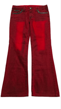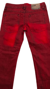 > BRAND NAME Tag : Original Jeans Condition : Used ( 7.5 / 10 ) Material : Cotton Colour : Blood Red ........................................................................ > Size ( On Tag : 29 Inch ) Manual Measurements / Laid Flat ( inches ) Waist : ~ 15 " Length : ~ 37.5 " ( Outseem ), ~ 28 " ( Inseem ) ( Please Check Actual Size And Image Carefully. All Sales Are Final. No Return, No Refund ) * The Colour Of The Item May Slightly Vary, Due To Quality Of Camera And Light Effect. ........................................................................ > ✈️ WORLDWIDE EXPRESS SHIPPING ✈️ DHL / FedEx 5-10 Days Worldwide (From Asia) ❗ ( Please Sent Me Your Contact Number After Making A Purchase For Shipping Purpose - To Written On Parcel ) Thank You ~ GukitaStore ( ぐきた店 ) ~