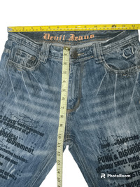 >BRAND NAME Tag : Devil Jeans Condition : Used ( 7.5/10) Material : Cotton Colour : Blue Denim ........................................................................ > SIZE Manual Measurement / Laid Flat ( inches) Waist : ~14.5" Length : ~ 41 " ( Outseam ), ~ 32 " ( Inseam ) Front Rise : ~ 10" Thigh : ~ 10.5" Knee : ~ 9" Leg : ~ 8" ( Please Check Actual Size And Images Carefully. All Sales Are Final. No Return, No Refund ) * The Colour Of Item May Slightly Vary Due To Quality Of Camera. ........................................................................ > ✈️ WORLDWIDE EXPRESS SHIPPING ✈️ DHL / FedEx ETA 5 ~10 Days Worldwide ( From Asia ) ❗( Please Sent Me Your Contact Number After Making A Purchase For Shipping Purpose: To Written On Parcel ) Thank You ~ GukitaStore ~