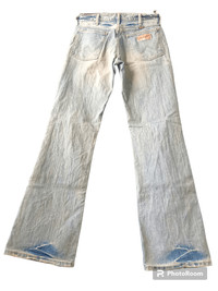 > BRAND NAME Tag : Wrangler ( Made In China For Japanese Merket ) Condition : Used ( 7.5/10) Material : Cotton Colour : Blue Denim ........................................................................ > SIZE Manual Measurement / Laid Flat ( inches) Waist : ~15 " ( Size On Tag : 27 ) Length : ~ 41 " ( Outseam ), ~ 32 " ( Inseam ) ( Please Check Actual Size And Images Carefully. All Sales Are Final. No Return, No Refund ) * The Colour Of Item May Slightly Vary From Actual, Due To Quality Of Camera And Light Effect. ........................................................................ > ✈️ WORLDWIDE EXPRESS SHIPPING ✈️ DHL / FedEx ETA 5 ~ 10 Days Worldwide ( From Asia ) ❗( Please Sent Me Your Contact Number After Making A Purchase For Shipping Purpose: To Written On Parcel ) Thank You ~ GukitaStore ~