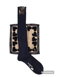 BRAND NAME Tag : Yves Saint Laurent (YSL) Condition : New Material : Cotton Colour : Blue Black Item c/w used YSL handkerchief. ........................................................................ > SIZE Manual Measurement / Laid Flat ( inches) Foot Length : ~ 10" Tube Length : ~ 18" Cuff Width : ~ 3" Cuff Height : ~ 8" ( Please Check Actual Size And Images Carefully. All Sales Are Final. No Return, No Refund ) * The Colour Of Item May Slightly Vary Due To Quality Of Camera. ........................................................................ > ✈️ WORLDWIDE EXPRESS SHIPPING ✈️ DHL / FedEx ETA 5 ~10 Days Worldwide ( From Asia ) ❗( Please Sent Me Your Contact Number After Making A Purchase For Shipping Purpose: To Written On Parcel ) Thank You ~ GukitaStore ~