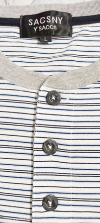 > BRAND NAME Tag : Sacsny Y'Saccs Condition : Used ( 8 / 10 ) Material : Cotton, Polyester Colour : White Stripes ........................................................................ > Size ( On Tag : L ) Manual Measurements / Laid Flat ( inches ) Chest : ~ 21.5" Length : ~ 26.5" Shoulder : ~ 18" Sleeve Length : ~ 9.5" Hem : ~ 21" ( Please Check Actual Size And Image Carefully. All Sales Are Final. No Return, No Refund ) * The Colour Of The Item May Slightly Vary, Due To Quality Of Camera And Light Effect. ........................................................................ > ✈️ WORLDWIDE EXPRESS SHIPPING ✈️ DHL / FedEx 5-10 Days Worldwide (From Asia) ❗ ( Please Sent Me Your Contact Number After Making A Purchase For Shipping Purpose - To Written On Parcel ) Thank You ~ GukitaFasshonStore ~