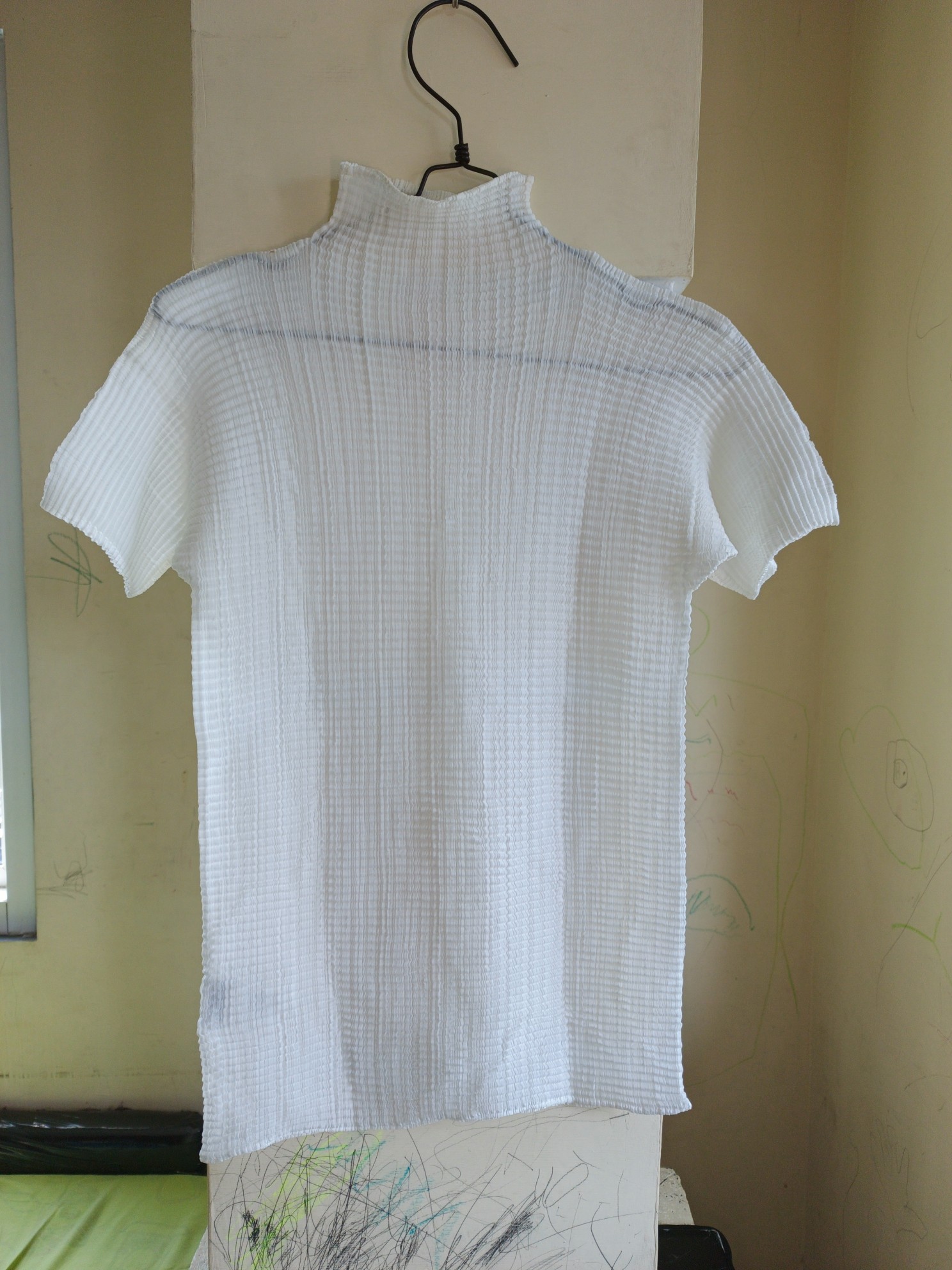 issey miyake fete made in japan pleats are rare and not as usual size 3 on tag length 60cm pit to pit 36cm (without being pulled) pleated material so it can stretch up to 2 times very good when used, so it will look press body or body fit