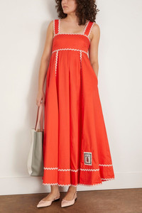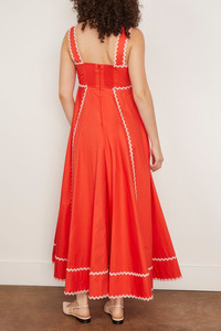 The Alemais Contessa Summer Dress was made in collaboration with Greg Sindel of Studio A. This dress features a flattering empire waistline with a contrasting rif-rac trim. Wear yours with sandals and a tote bag. FIT DESCRIPTION MODEL MEASUREMENTS - Fits true to size, take your normal size - Midi length - Empire waistline - Full skirt - Ric-rac trim - Concealed side zipper - 100% Organic Cotton Poplin - Taylor is wearing a size 6/ 2 US - Bust: 33.5" - Waist: 27.5" - Hips: 36.5" - Height: 5’9”