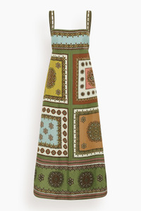 The Alemais Contina Day Dress in Multi is a midi length dress with wide spaghetti straps and square neck. FIT DESCRIPTION MODEL MEASUREMENTS - Fits true to size, take your normal size - Midi day dress silhouette - Square neck - Fitted bust - Shirred panel at back bodice - Invisible zip at side - Partially lined - Composition: 83% Fsc Viscose 17% Linen - Gracie is wearing a size 6/ 2 US - Bust: 34" - Waist: 26" - Hips: 38" - Height: 5’9”