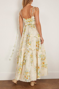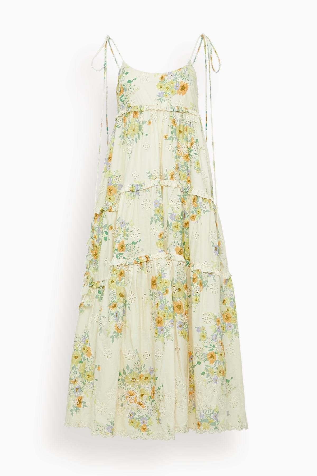 The Alemais Juliette Tiered Midi Dress is a must-have piece from their PreFall 25 Collection. This midi dress features a flowing, tiered silhouette in a organic cotton with eyelet detailing. Wear yours with sandals and a shoulder bag. FIT DESCRIPTION MODEL MEASUREMENTS - Fits true to size, take your normal size - Midi length - Relaxed fit - Tiered silhouette - Eyelet details - Tie shoulder straps - Concealed zipper - 100% Organic Cotton - Charley is wearing a size 6/ 2 US - Bust: 33” - Waist: 25” - Hips: 34” - Height: 5’8”