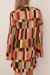 The Alemais Marjorelle Mini Dress in Multi is a long sleeve mini dress with artwork created in collaboration with Laurence Leenaert. FIT DESCRIPTION MODEL MEASUREMENTS - Fits true to size, take your normal size - Relaxed mini dress silhouette - Round neck with button and loop closure at centre back - Composition: 80% Linen 20% Silk - For this piece we recommend - dry clean only. - Charley is wearing a size 6/ 2 US - Bust: 33” - Waist: 25” - Hips: 34” - Height: 5’8”