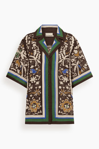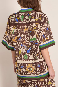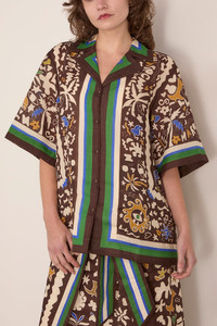 The Alemais Maroc Relaxed Shirt in Multi is a short sleeve shirt with relaxed fit. FIT DESCRIPTION MODEL MEASUREMENTS - Fits true to size, take your normal size - Relaxed shirt silhouette - Camp collar - Self-covered buttons - Composition: 100% Ramie - For this piece we recommend a cold hand wash. - Mya is wearing a size 6/ 2 US - Bust: 32" - Waist: 25" - Hips: 34" - Height: 5’9"